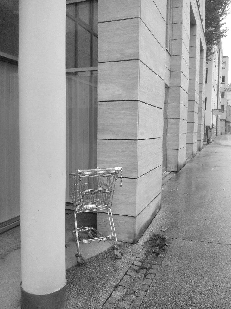 Salzburg, die Stadt der barocken Bauten, der klassischen Musik, und der Festspiele. Um die Erwartung all der Touristen, die genau für dieses Bild ganzjährig den historischen Stadtkern fluten, erfüllen zu können, ist hier kaum Platz für den Alltag der einfachen Stadtbewohner, welcher hier nicht ins Bild zu passen scheint. Doch hie und da trifft man auf Spuren der Stadtbewohner, die einen Gegenpol zu der klassischen, konservativen Fassade der Stadt darstellen: Ein Beispiel dieser Spuren sind scheinbar willkürlich im öffentlichen Raum, abseits der Supermarktareale abgestellte Einkaufswägen. Sie prägen als Botschafter der (fast schon Parallel-)Gesellschaft das Stadtbild wie in sonst kaum einer Stadt. Dieses Projekt versucht, diese überraschenden, ungeplanten Begegnungen in Szene zu setzen und als unverfälschte Momentaufnahmen festzuhalten. Kein Einkaufswagerl wurde je für eines der Fotos von der Stelle, an der es abgestellt wurde, wegbewegt oder zurechtgerückt. Auch sämtliche Objekte in der Umgebung blieben stets unverändert. Oft wirken die Bildausschnitte wie komponiert. Es entstehen Bilder der Zufälligkeiten, die Fragen aufwerfen und Geschichten in unseren Köpfen entstehen lassen. Etwa über die Reise, die diese Einkaufswägen schon hinter sich haben, über die Menschen, die sie auf diese Reise mitgenommen haben und deren Leben, und über das, was noch kommen mag. Sie erzählen Geschichten, die sonst keinen Platz in dieser Stadt haben, und bleiben als Zeuge zurück, wo sonst keine Spur dieser Geschichten mehr bliebe.